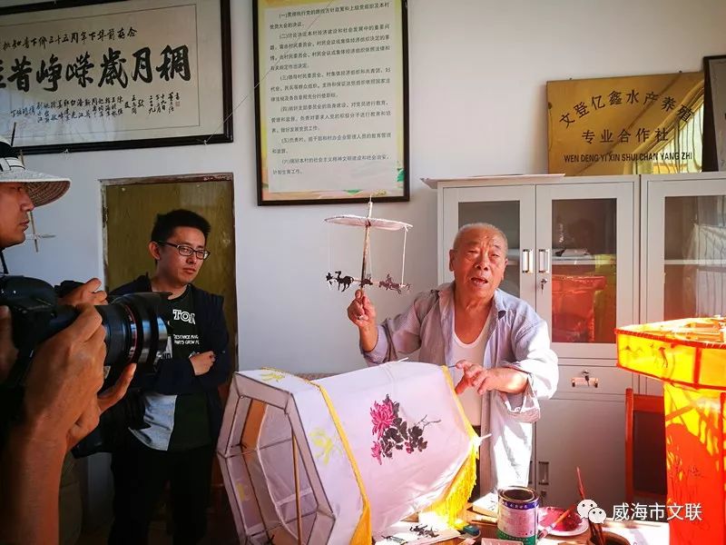 文登区埠口港历史悠久,开埠600余年,见证了历史的变迁。明末清初,文登张家埠村的渔民为打鱼晒网,垒筑了一线乱石码头,时有南船往来经商,逐渐形成以商业为主的港口。这里曾是天然的避风良港,渔船汇集、桅杆林立、物流兴旺;这里曾是人烟鼎盛、商贸繁华,节庆之时家家户户挂起“走马灯”这里曾是海防要塞,抗倭英雄戚继光在此筑起千余米的烽火台抗击倭寇;这里曾活跃着重要的抗日力量,流传着农民英雄黄二男勇斗恶霸的故事……词曲作者在文登埠口管委有关负责人的带领下,先后观看了埠口“渔港印象小镇”的宣传片,参观了正在建设当中的渔港和京东第一“麻辣海鲜”的隆洋水产食品公司,走进百余年历史的小埠前村,拜访了百年历史“走马灯”非遗传承保护人隋书弼老人,了解“走马灯”的历史和有关制作工艺。